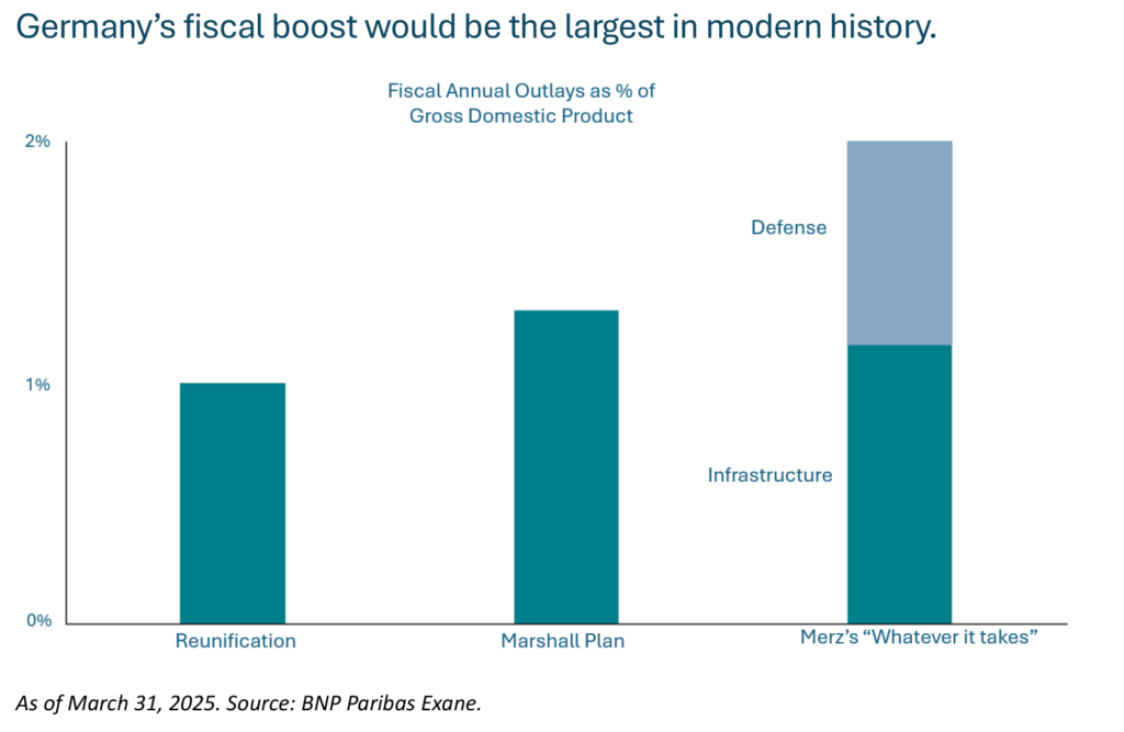 - Europe, led by an unshackled Germany, can stimulate economic growth with fiscal spending.
